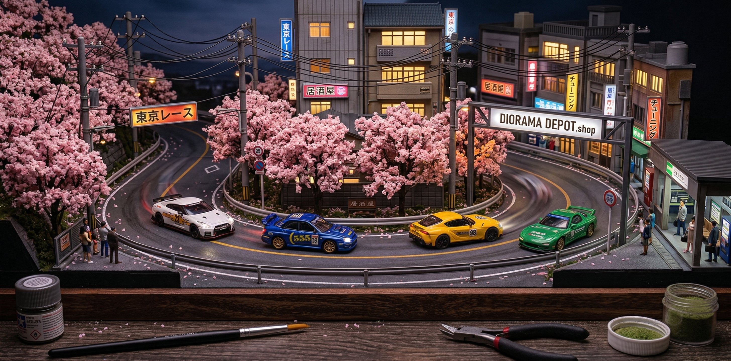 Sakura Cherry Blossom Diorama - 1/64 Scale Diecast Car Display Case with Acrylic Cover